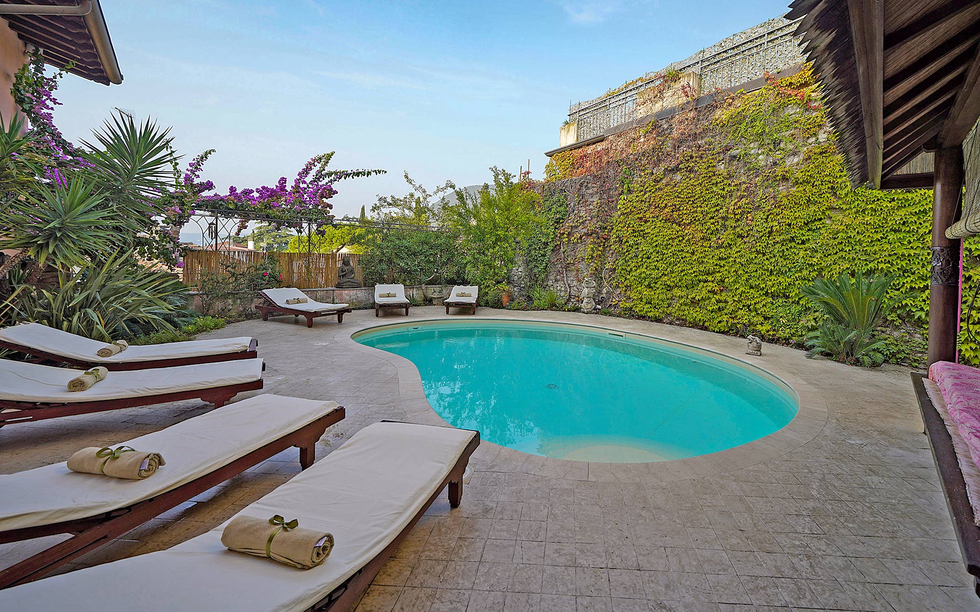Alle Zimmer (auch die historischen im Hauptgebäude) sind farbenfroh und von Patrizia mit Erinnerungen an Reisen zwischen Bali und Gardone eingerichtet: Himmelbetten aus Teakholz, Möbel, Gemälde und Skulpturen, die einen romantischen, einladenden und minimalistischen Stil schaffen: ein abgeschiedenes Refugium von zeitloser Raffinesse.